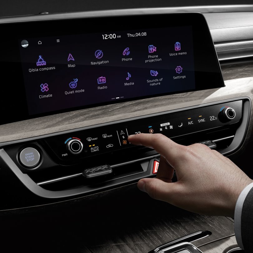 Высокотехнологичная панель управления объединяет ключевые функции информационно-развлекательных систем и систем кондиционирования воздуха и упрощает их работу с помощью одной кнопки, которая может переключаться между двумя системами, расположенной в центре панели. Все физические кнопки, кроме тех, которые предназначены для функций, требующих интуитивно понятного управления, таких как регулировка громкости мультимедиа и температуры в салоне, являются сенсорными, как и новейшие электронные устройства.